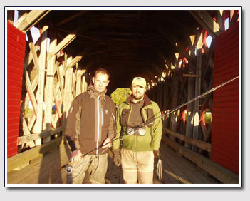 A notre arrivée à Matane, Gilbert nous retrouva au camping, accompagné Gérôme, un pêcheur qu'il avait guidé 2 jours durant (ce dernier avait pris 2 grilses). Il nous remit nos permis de pêche (permis annuel de remise à l'eau d'un coût de 7 euros) et droits d'accès journalier (25 euros/personne/jour), ce qui n'est finalement pas plus élevé qu'une journée de pêche en réservoir en France. Il nous proposa de pêcher la rivière Matane, cette dernière ayant donné plus de satisfaction les jours précédents (il y avait fait prendre récemment un saumon de près de quarante livres, au bomber). Cependant, fait rare, les conditions de pêche en cette fin de saison n'étaient pas des plus favorables, ce mois d'août étant très sec.